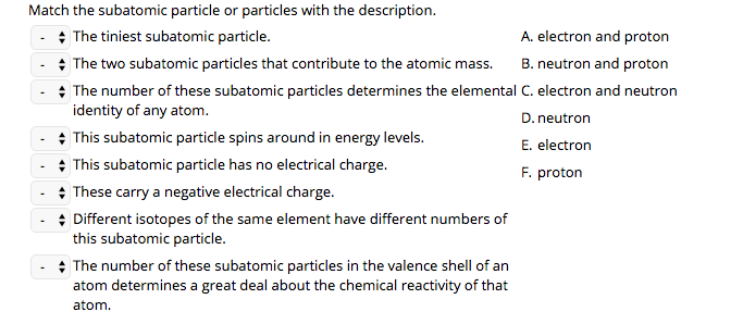 Solved Match The Subatomic Particle Or Particles With The Chegg Com