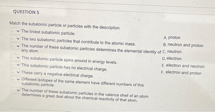 Solved Questions Match The Subatomic Particle Or Particles Chegg Com